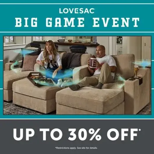 More action. More people. More snacks. One couch that adapts to all of it. Sactionals were made for long game days, long seasons, and to be long-lasting. Stop by the Lovesac showroom to get up to 30% off before it's gone